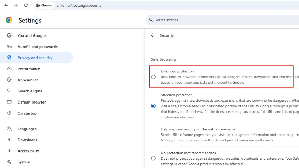 Even though the app passed tests on all major browsers, the login page was flagged – either by Google’s crawlers or the browser itself during runtime. Significantly, the user encountering the error had Chrome’s Enhanced Protection turned on, which suggests the stricter security settings played a role? – maybe.